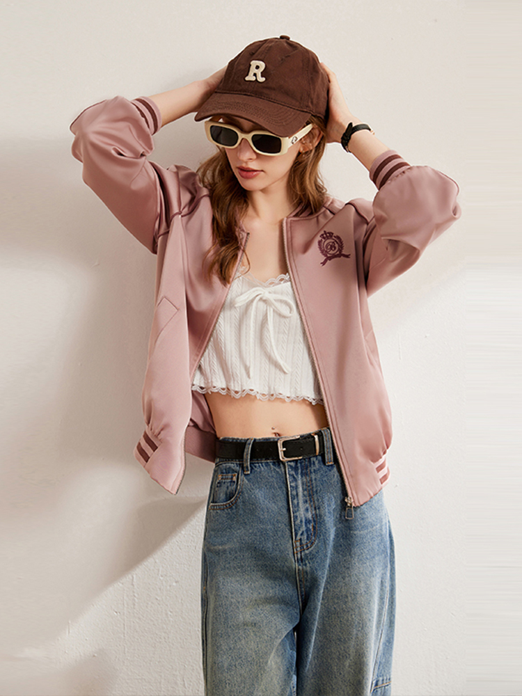 スタジャンのスポーティーな要素と、可愛らしい刺繍デザインのバランスが絶妙です。