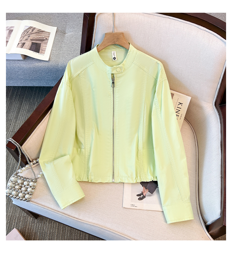 立ち襟デザインが特徴的な軽やかなスタジャン。細部までこだわった縫製と柔らかな質感が上質な雰囲気を演出します。