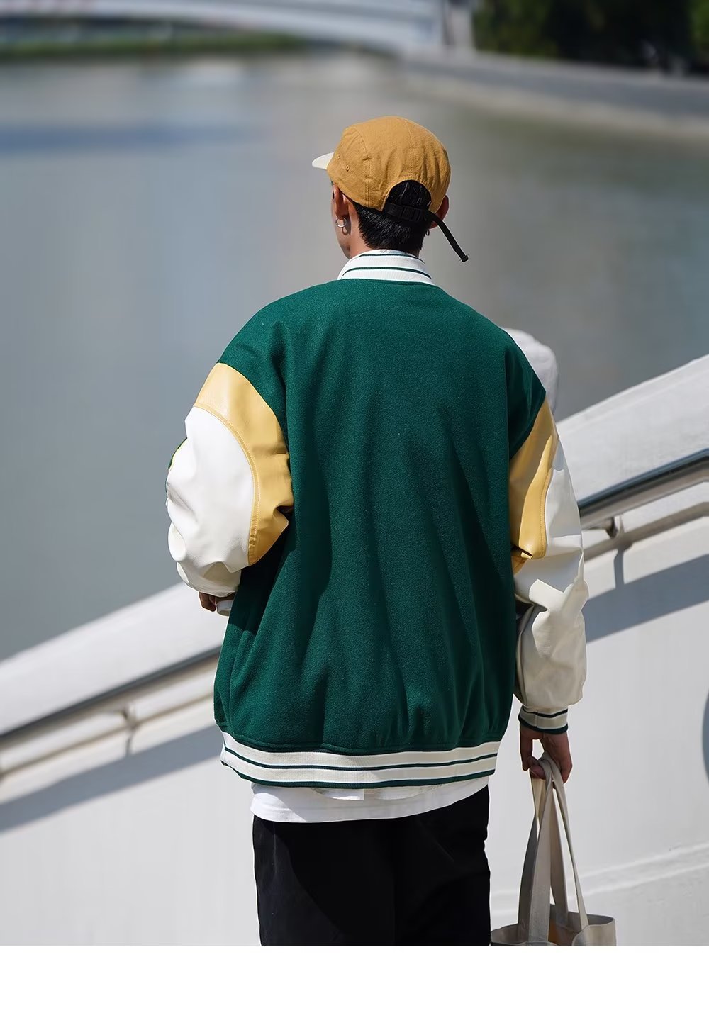 緑を基調とした本体に、対照的な配色の袖がスポーティな印象を際立たせます。