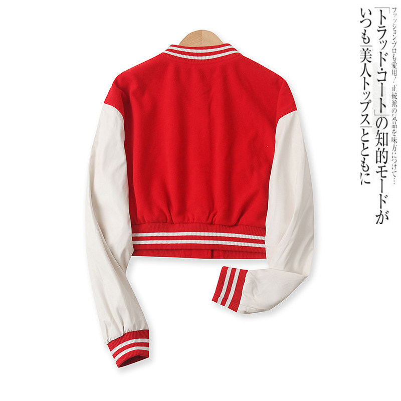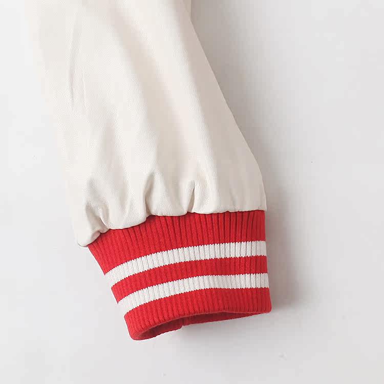 元気でアクティブな印象を与えるスタジャンです。 胸元には存在感のある刺繍ワッペンを配し、袖や裾にはスポーティーなライン装飾が施されています。 両サイドには実用的なポケットを備え、スナップボタンで着脱も簡単です。 ピンク系のボディと白の袖が爽やかなコントラストを生み出し、カジュアルスタイルを格上げしてくれます。 学生から大人まで幅広く着用できるデザインで、春秋のアウターとして活躍します。