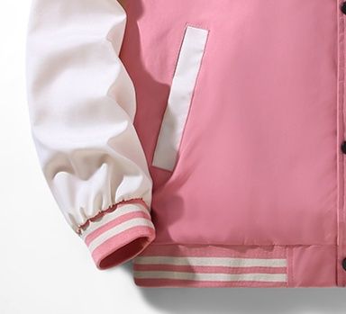 ピンクのボディと白い袖の組み合わせが爽やかで、カジュアルコーディネートに最適です。