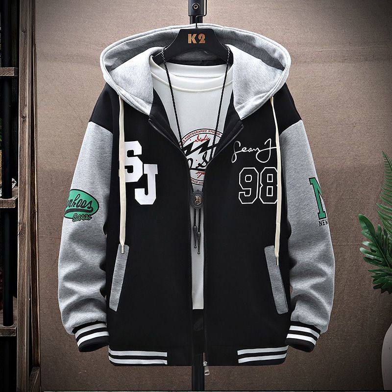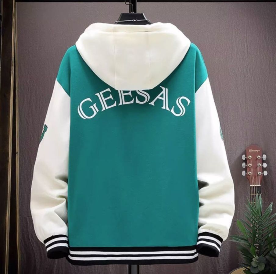 フード付きデザインで機能性も抜群、緑のボディが若々しい印象を与えるスタジャンアイテムです。