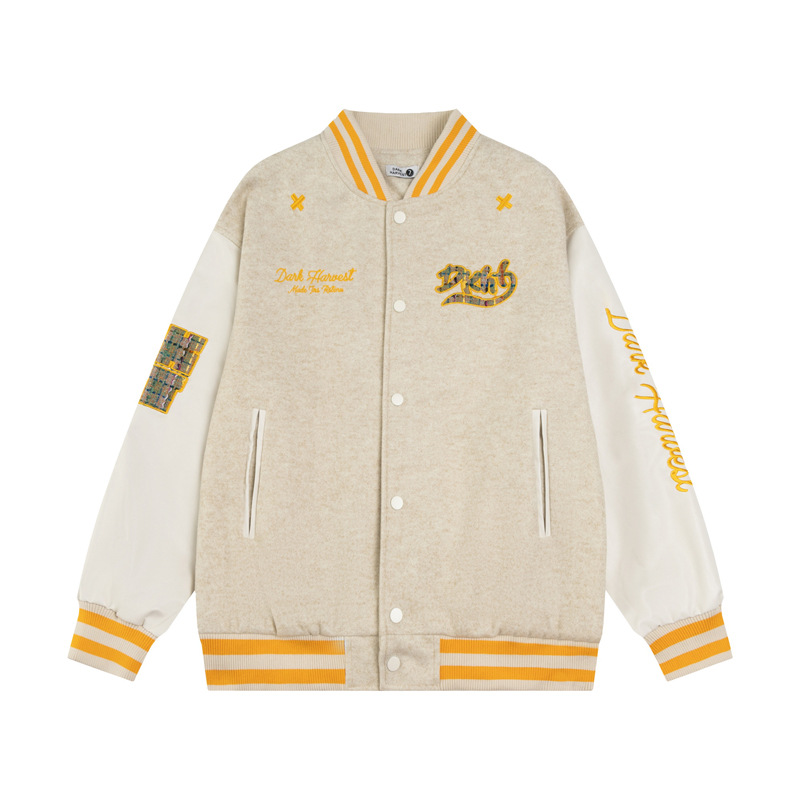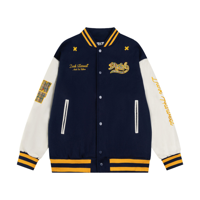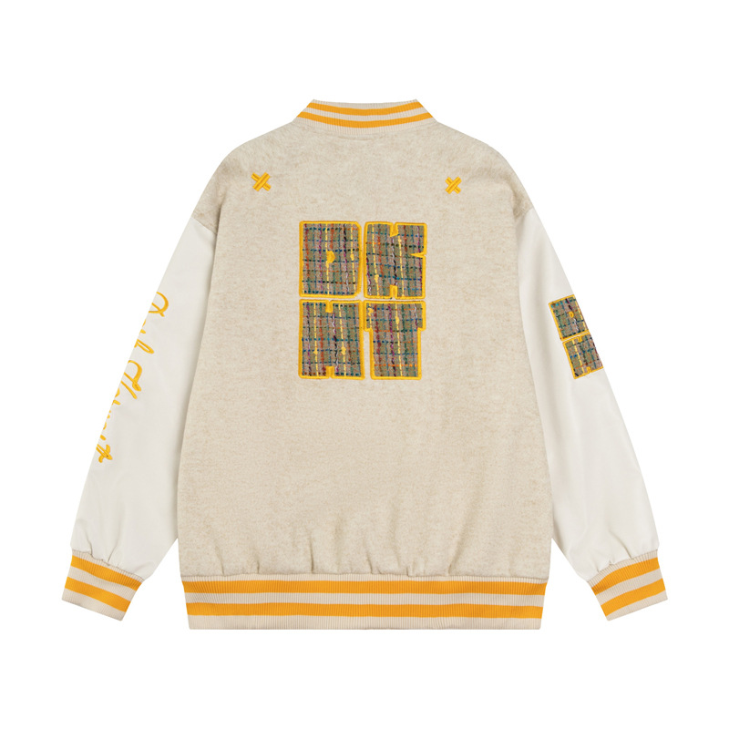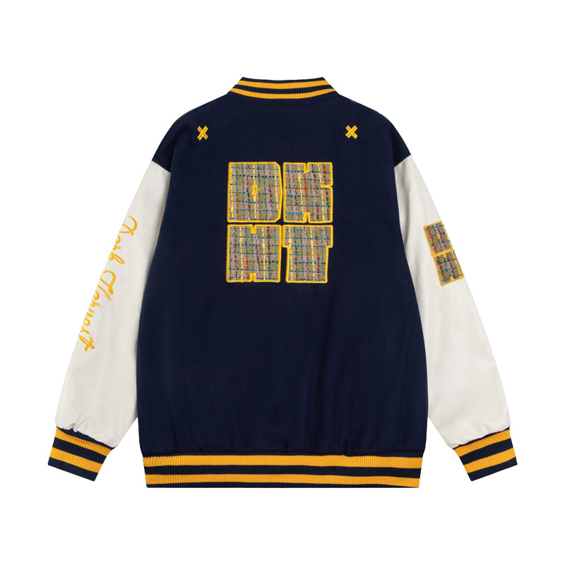 身頃にはゴールドの立体刺繍とワッペンが施され、袖部分は対照的なホワイトのバイカラー仕様となっています。